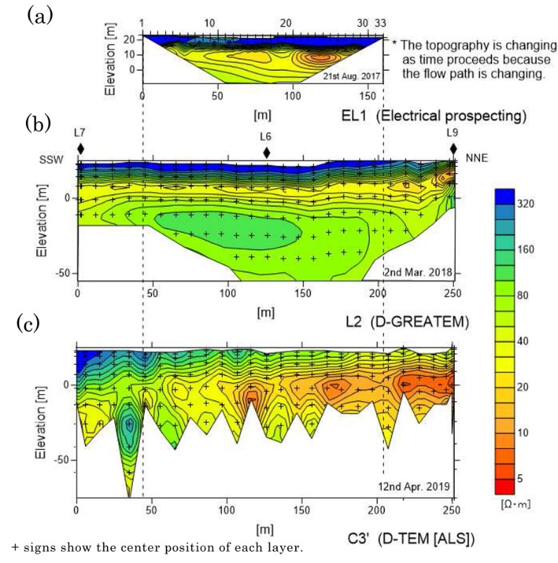 (a) 電気探査 (b) D- GREATEM (c) D-TEM [AL]